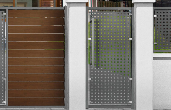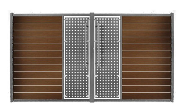 Le portail Alix est un astucieux mariage entre l’acier (cadre en damier) et l’aluminium (lames en ton bois). Le design et l’équilibre des formes de ce portail embelliront les résidences d’exception.