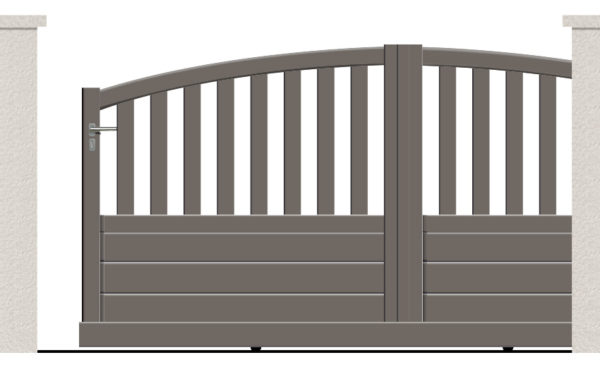 – Battant : serrure encastrée avec cylindre européen et clés plates, gonds et crapaudines à visser réglables. Renforts de série. profil cache jour. Sabot automatique et arrêts poussoirs.