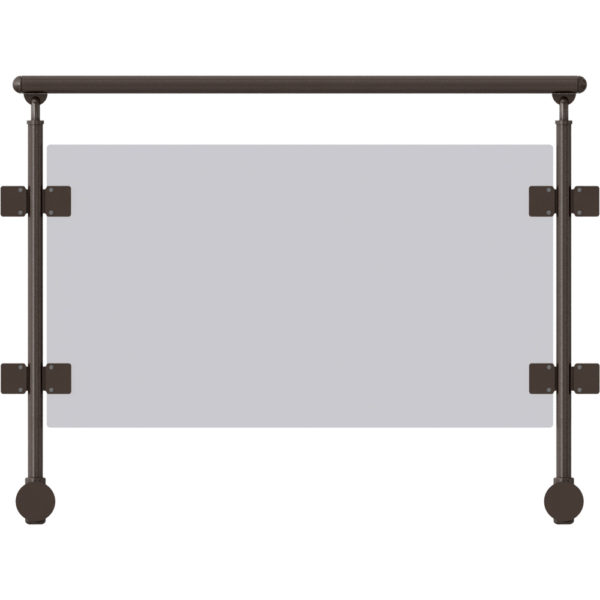 Habillage fixé entre poteaux, composé de verre feuilleté 44.2 clair de 8,76mm fixé entre pinces.