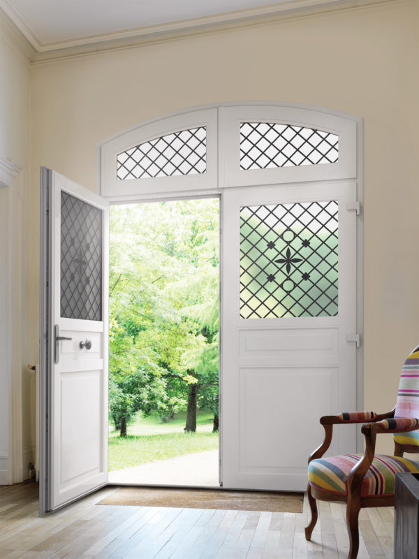 Porte composée de plate-bande 2 faces et de vitrage déco « caro »