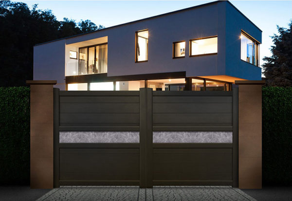 Le portail battant Horilum possède en place de la partie barreaudée un insert en PMMA avec incrustation de fibre de coton. L’insert est éclairé grâce à des LED. La motorisation intégrée est directement vendue avec ce portail pour plus de discrétion.