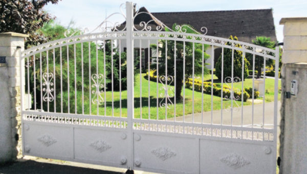 – Coulissant : serrure encastrée, profil de réception coté fermeture, double montant coté refoulement, système de guidage supérieur à sceller, crémaillère et son capot posés en usine si livraison moteur .