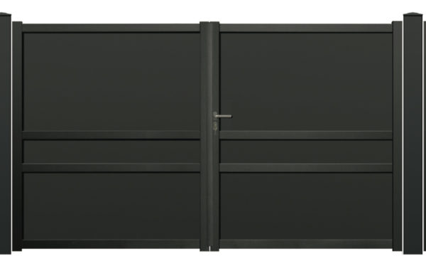 – Battant : serrure encastrée avec cylindre européen et clés plates, gonds et crapaudines à visser réglables. Renforts de série. profil cache jour. Sabot automatique et arrêts poussoirs.