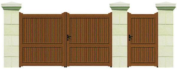 – Coulissant : serrure encastrée, profil de réception coté fermeture, double montant coté refoulement, arche de guidage, crémaillère et son capot posés en usine si livraison moteur .