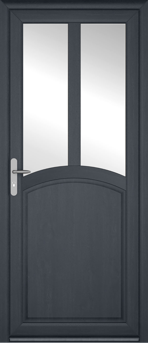 Porte composée d’un triple vitrage « imprimé 200 », du motif décoratif « arbor » et de plate-bande 2 faces