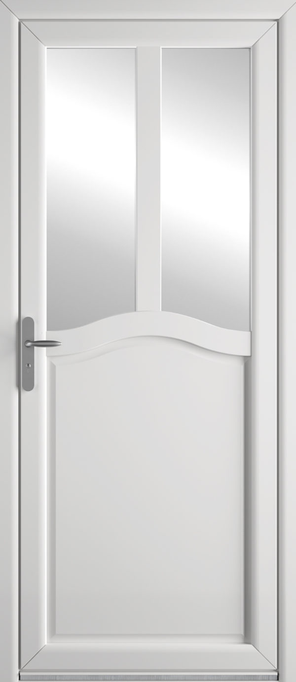 Porte traditionnelle composée d’un vitrage « imprimé 200 » et de plate-bande 2 faces