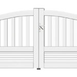 – Coulissant : serrure encastrée, profil de réception coté fermeture, double montant coté refoulement, arche de guidage, crémaillère et son capot posés en usine si livraison moteur .