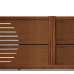 Santos est un portail plein composé d’inserts en aluminium brossé, ce qui lui donne un aspect chic.