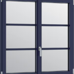 Battement intérieur droit avec poignée centrée, finition inox sur fenêtre de couleur et coloris blanc sur fenêtre blanche